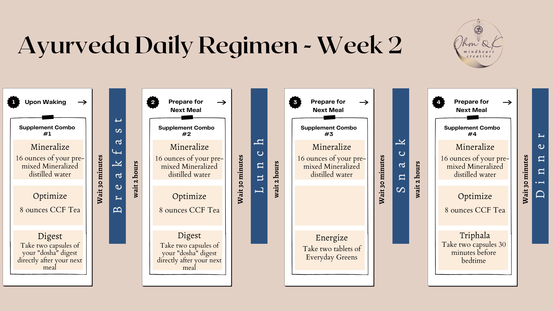 During the next 7 days, you will enter The Heart of the Cleanse: a period of eating a monodiet of grains, kitchari (basmati rice cooked with split mung beans), vegetables, and plenty of detoxifying fluids; the process at this stage can be complemented by a number of supportive lifestyle practices. You’ll also be introduced to two other supplements to support your cleansing — Total Body Cleanse & Triphala.